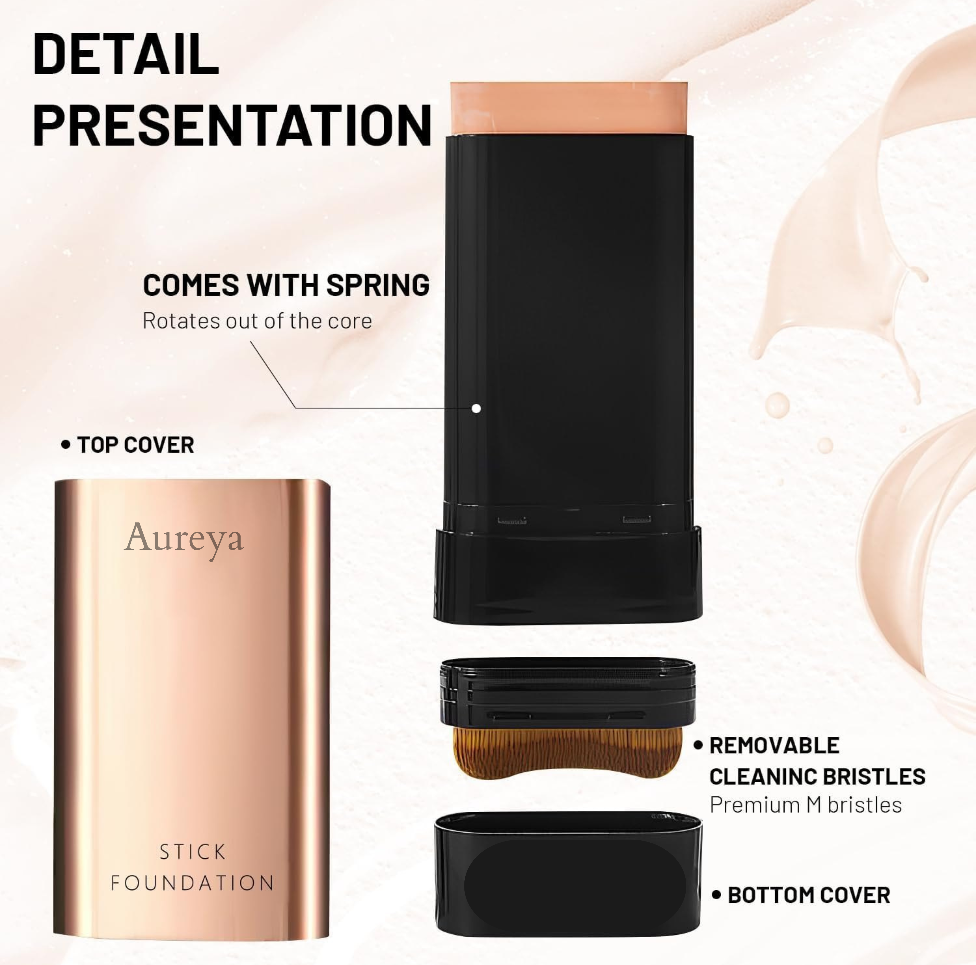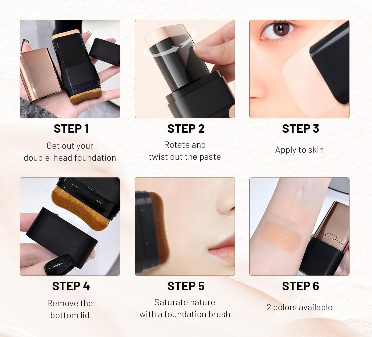 The Aureya™ Dual Radiance Stick features an integrated brush for smooth, quick application, making it perfect for on-the-go touch-ups.